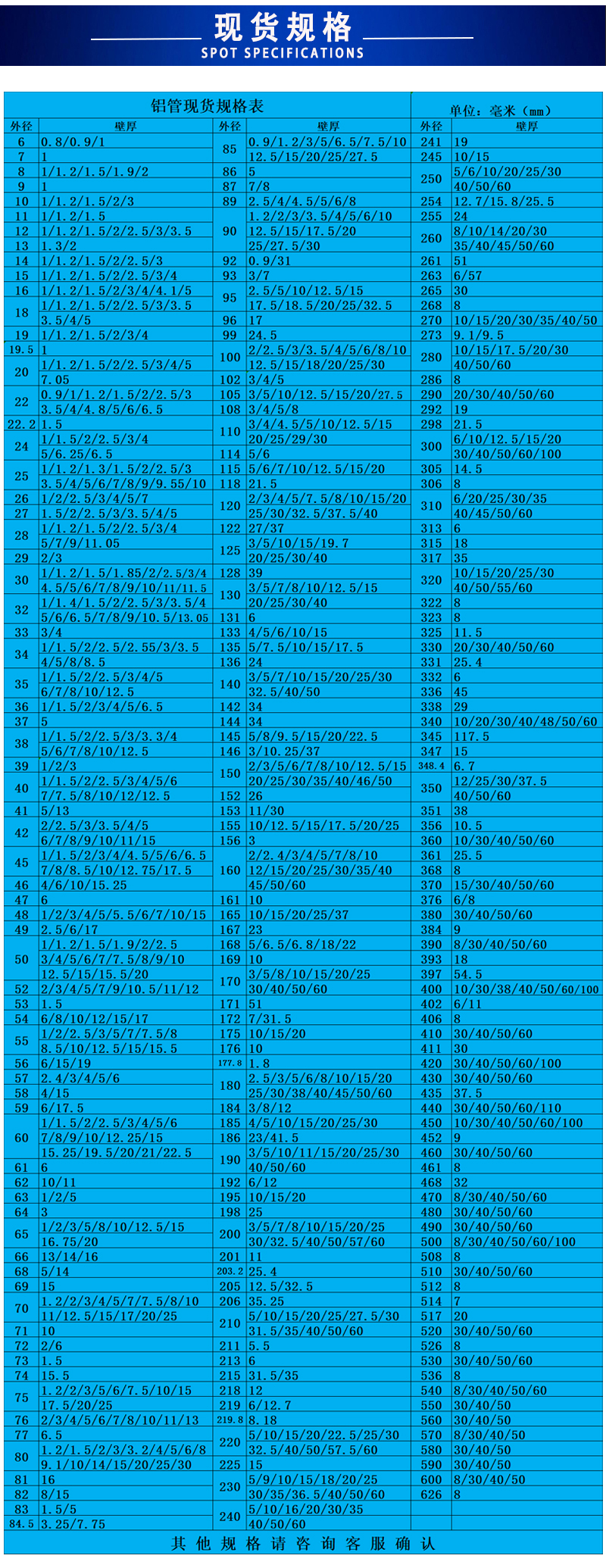聚金鑫(上海)鋁業(yè)有限公司主要經(jīng)營無縫鋁管,鍛造鋁管,擠壓鋁管,鋁合金棒,鋁方棒,鋁排 5754鋁管_5182鋁管_鍛造鋁圓片_鍛造鋁管_6082鋁管_7075鋁棒 鋁管 鋁方管 無縫鋁管 厚壁鋁管 鋁板 鋁卷 鋁棒 鋁排 角鋁 鋁型材等有色金屬,所售產(chǎn)品均執(zhí)行鋁材行業(yè)標(biāo)準(zhǔn),有鋁型材擠壓生產(chǎn)線5條,噴涂、氧化生產(chǎn)線3條,配有CNC加工中心,以品質(zhì)保障、現(xiàn)貨規(guī)格多樣、效率高來滿足不同客戶需求,所售鋁型材主要應(yīng)用于零部件制造業(yè)、工程、煤礦、電力、汽車工業(yè)、建筑裝飾、能源化工、船舶制造業(yè)、機(jī)械工程、儀器設(shè)備、航空航天等行業(yè)。公司始終堅(jiān)持為客戶提供品質(zhì)保障的鋁材作為企業(yè)發(fā)展的根本,并為客戶提供系統(tǒng)的鋁材產(chǎn)品解決方案,以周到細(xì)致的服務(wù)回報(bào)廣大客戶. 主營產(chǎn)品材質(zhì)有:6063(T6普遍的合金材質(zhì)應(yīng)用廣泛) 6061(T4硬鋁管) 2A12(LY12多為無縫鋁管) 3A21(防銹硬鋁) 6005(厚壁鋁管) 7075(t5 T6航空鋁管) 5052(5056 5083海洋用鋁管) 1060(1050 1100純鋁管 多為鑄鋁管) 有縫鋁管規(guī)格 直徑4mm-506mm 壁厚0.7mm-50mm(材質(zhì)基本為6063 6061 6005焊接性能好,硬度一般,應(yīng)用多。 鍛打鋁管規(guī)格 直徑8mm-260mm 壁厚1mm-25mm(材質(zhì)全部為2024 也習(xí)慣稱之為LY12 或者2A12 硬度高 制作工藝為硬鋁棒穿孔) 防銹鋁管規(guī)格 直徑10mm-300mm 壁厚1mm-30mm(5系鋁管 有縫,多數(shù)用于輪船,游輪,汽艇上)7075現(xiàn)貨 直徑16mm-185mm 壁厚2mm-16mm(7075材質(zhì)多數(shù)為飛行器使用、其特點(diǎn) 密度低 質(zhì)量輕,硬度高于普通合金1.5-2倍!但是其價(jià)格也比同等規(guī)格的鋁管高了接近120%,所以價(jià)格決定了7075的鋁管多數(shù)用在較為貴、精密的設(shè)備上面)